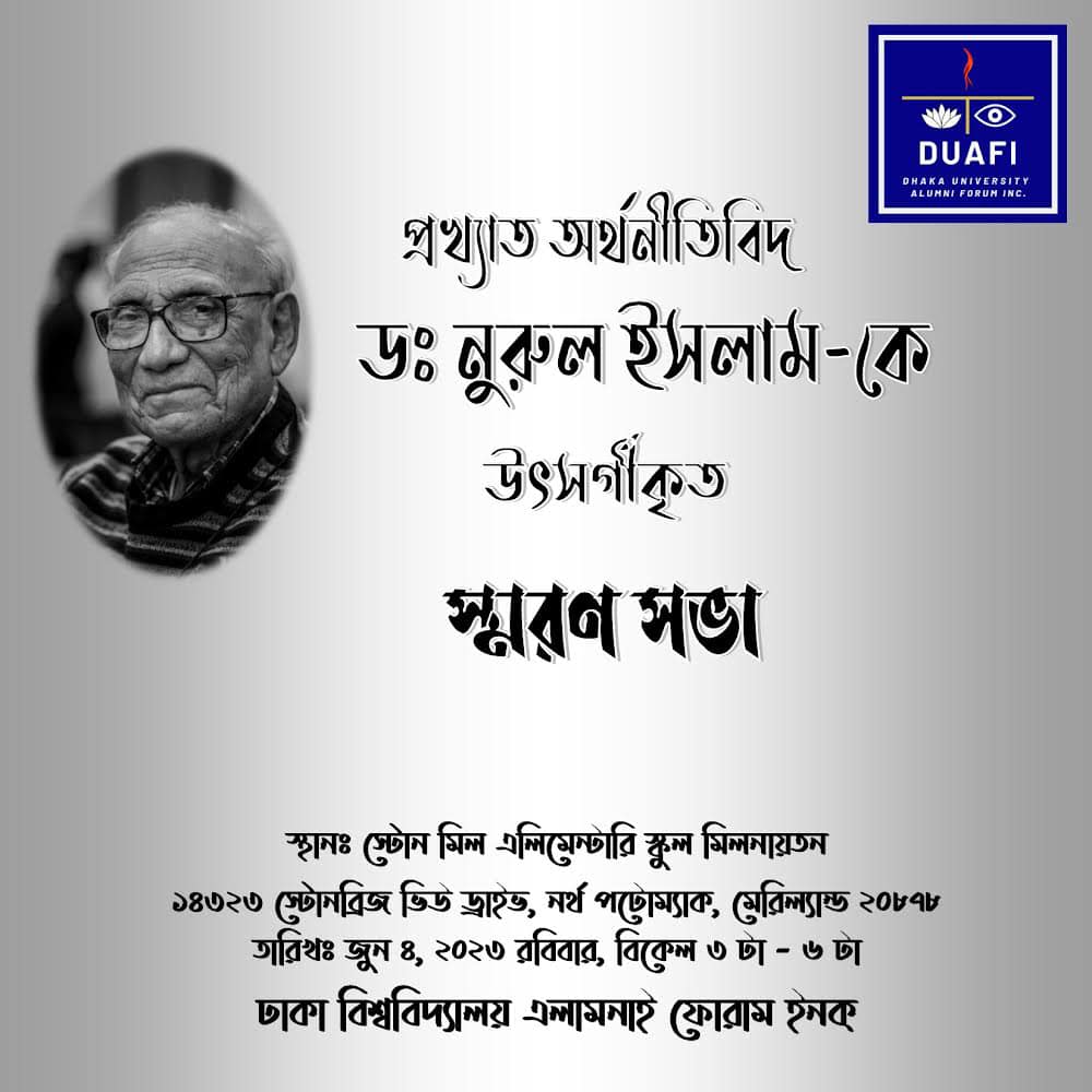 স্মরণ সভা - ডঃ নুরুল ইসলাম